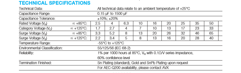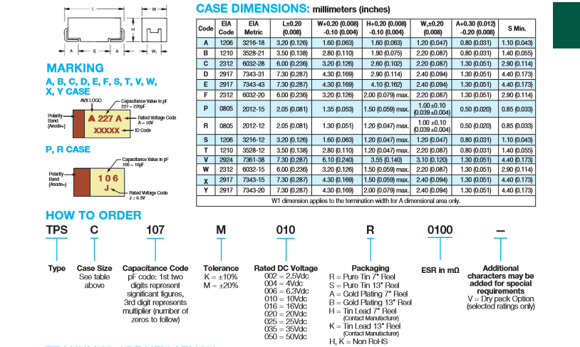 产品系列AVX钽电容:TPS****K***R** 系列